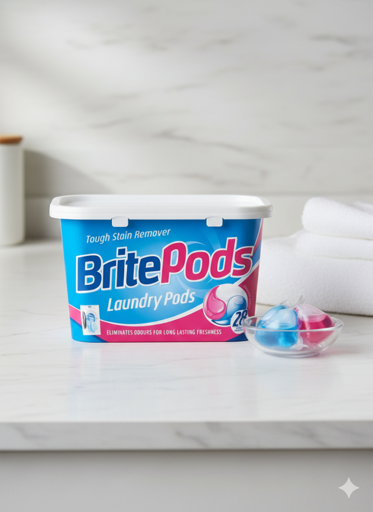 Say goodbye to messy powders and liquids. BritePods are pre-measured laundry capsules packed with high-performance detergent that cleans deeply, removes stains, and leaves your clothes smelling fresh and soft.